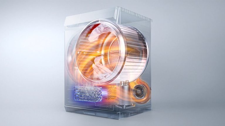 – Máy sấy bơm nhiệt hoạt động theo nguyên lý làm nóng luồng không khí bên trong lồng sấy bằng máy nén sử dụng hơi ga, sau đó tuần hoàn luồng không khí liên tục giúp sấy khô quần áo hiệu quả.